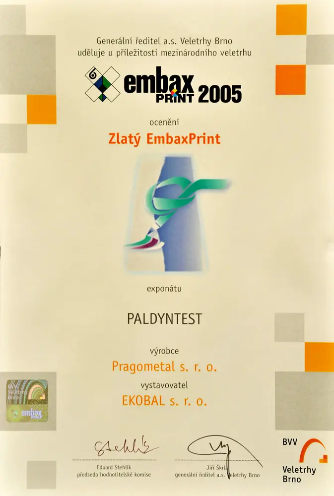Ocenění výrobku PALDYNTEST – ZLATÝ EMBAX-PRINT 2005