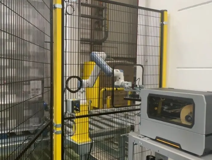 Linka využívá autonomní vozík AMR CDD14 pro přepravu palet, které jsou následně baleny dvěma stroji Rotomatic Light (každý pro jiný typ fólie). Přesné etiketování zajišťuje robot ve spolupráci se samostatnou tiskárnou. Celý proces je optimalizován pro maximální rychlost a flexibilitu.